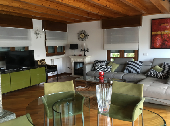 The residence spans multiple levels. On the ground floor, the living spaces stand out for their brightness and welcoming atmosphere. The living room, adorned with an elegant fireplace, opens onto a panoramic terrace, offering a commanding view of Lake Lugano, with vistas stretching from Melide to the city of Lugano and beyond. This level also includes a dining area and a semi-habitable kitchen. Exposed wooden beams lend warmth and character to the space. The first floor features an enchanting mezzanine bedroom and a bathroom. Here too, the lake view dominates, providing sweeping panoramas that encompass the entire basin facing Lugano.